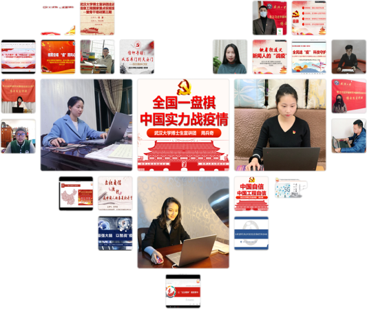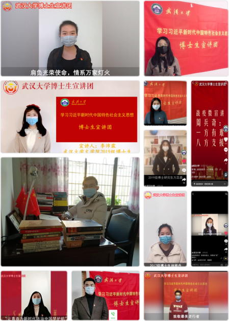 在疫情期间,武大博士生宣讲团勇当先锋,主动作为,联合清华大学博士生讲师团发起“高校联合抗疫志愿系列宣讲”倡议,主办全国高校抗疫联合志愿宣讲会,并联合清华大学等25所高校理论宣讲团开展集体备课。