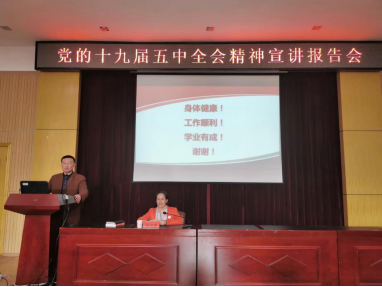 赵雪梅副书记强调,贯彻落实全会精神要学原文、读原著,领悟精髓要旨;要找差距、明不足,立足实际提升能力。她要求,领导干部要加强理论学习,敢于担当作为,落细落实《党委会议议事规则》和《党政联席会议议事规则》,科学编制“十四五”规划,推进治理体系和治理能力现代化;专业教师要牢记为党育人、为国育才使命,落实立德树人根本任务,不断提升教书育人本领,聚焦学科前沿攻关,做“有理想信念、有道德情操、有扎实学识、有仁爱之心”的好老师;专技、管理服务人员要把握“三全育人”要求,提升专业精神和专业能力,增强使命感和执行力,提升管理与服务效能,落实落细作风建设“1+3”文件;离退休教工要支持学校各项事业发展,做到老有所教、老有所学、老有所为、老有所乐,关心下一代健康成长;同学们要树立远大理想,热爱伟大祖国,练就过硬本领,锤炼品德修为。