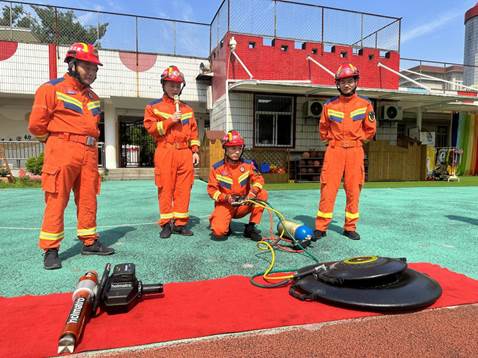 随后,消防员向幼儿耐心细致地介绍了地震救援器材,并进行现场展示,让幼儿零距离了解救援器材的使用。